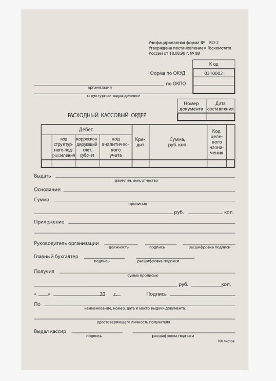 Бланк бух. типогр. Расходно-кассовый ордер, А5 (134х192мм), СКЛЕЙКА 100шт, 130005