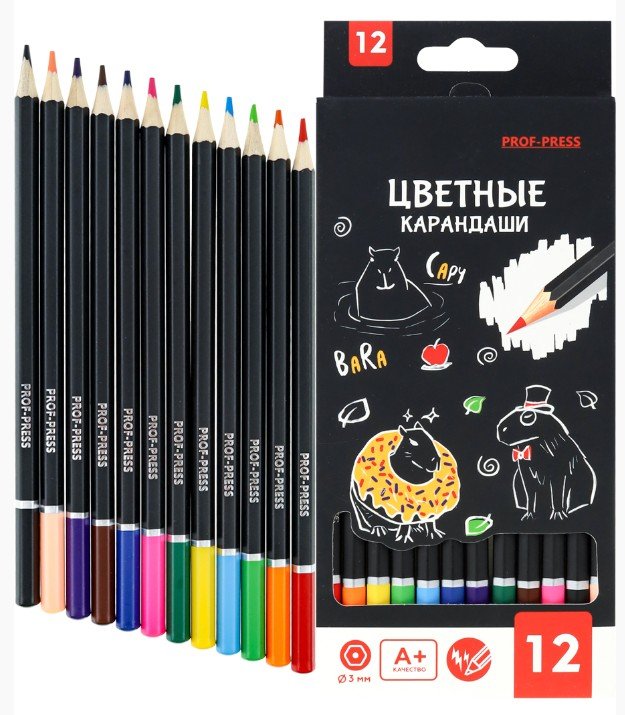 Карандаши цветные,набор,гексаг. 12цв. КАПИБАРЫ (КЦ-4718) гриф.d=3мм