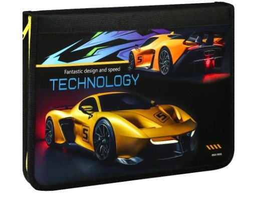 Папка для труда на молнии по кругу ТЕХНОЛОГИЧНЫЙ СУПЕРКАР (ПТР-8612) лам.карт, ткань, 340х235мм