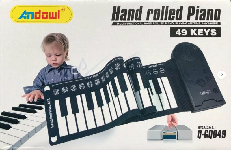 Особенности инструмента:1. Сворачиваемая клавиатура на 49 клавиш является стандартной , и её можно сворачивать в рулон, что обеспечивает небольшой размер и удобство переноски.2. На поверхности клавиатуры расположены функциональные горячие клавиши, облегчающие настройку вашего любимого ритма. 3. 8 наборов барабанного ритма, одна клавиша и один тон, функция записи и воспроизведения, 16-уровневая регулировка громкости, 32-уровневая регулировка ритма, автоматический режим сна и функция энергосбережения. 4. Встроенные 16 видов тонов. 5. Встроенные 10 видов ритма. 6. Встроенные 6 демонстрационных песен, которые можно использовать для изучения классических песен и наслаждения ими. 7. Встроенный динамик обладает округлым и четким звуком, мелодичным и приятным. 8. Внешние наушники, внешний источник питания постоянного тока. Источник питания: 3 батарейки типа АА или USB-кабель для зарядки (поставляется без батареи).