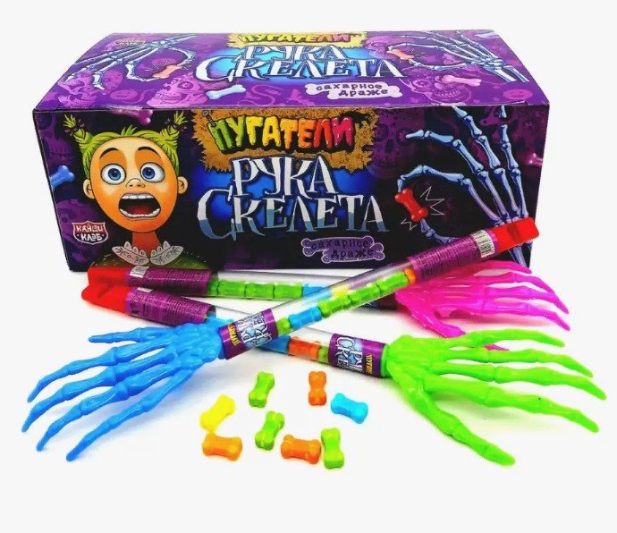 Сахарное драже "Пугатели рука скелета" 4гр (30шт) 4627197482110