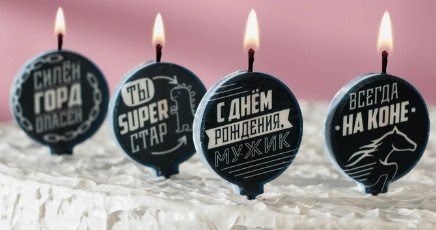 Свечи в торт «С днем рождения, мужик», чёрно-белые, 4×4.4 см, 4 шт. 5289943